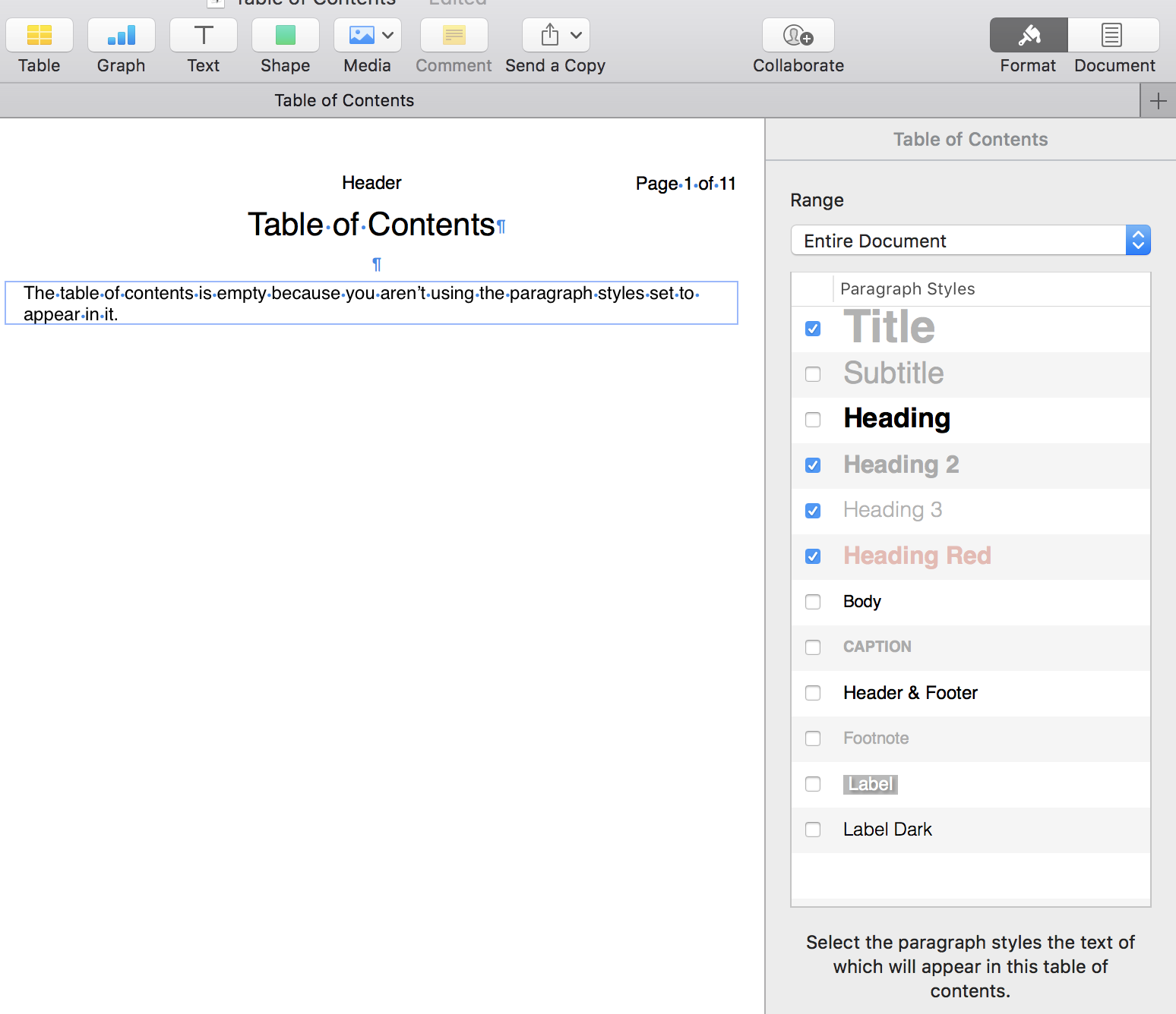 Create the table of contents put your cursor where you want to add the table of contents. In the table of contents window that opens, click the options button. Select table of contents and choose one of the automatic styles. In the title box, type a title for your toc (such as contents or list of figures ). This is ideal for long papers with multiple chapters or components. The process for generating your toc automatically can be easy if you set up the titles and headers in your document properly. As you can see in the image below, the table of contents uses the heading styles in your document to determine where each section begins. In the table of contents group, click table of contents. Click on table of contents. Click into your document where you want your toc navigate to the references tab open the table of contents dropdown menu Click on the table of contents icon. List all parts of the document (except the title page) and the page number on which each part begins. Type a number 1 next to chpt_title.